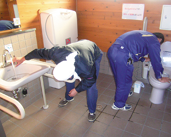 公衆トイレの衛生機器点検